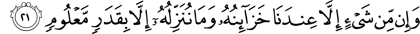 « Nous possédons des trésors de toutes choses, mais Nous les faisons descendre dans une certaine mesure. » [Surah Al-Hijr – 15:21]